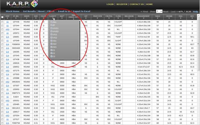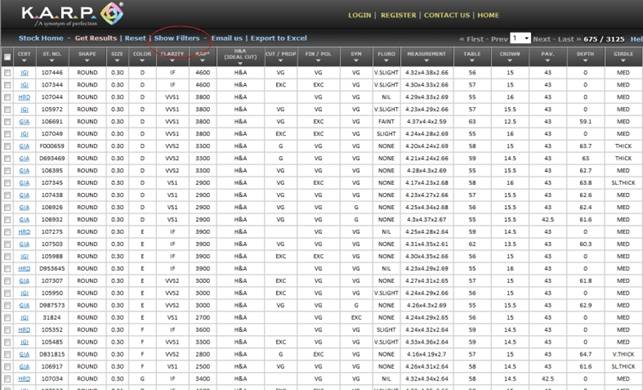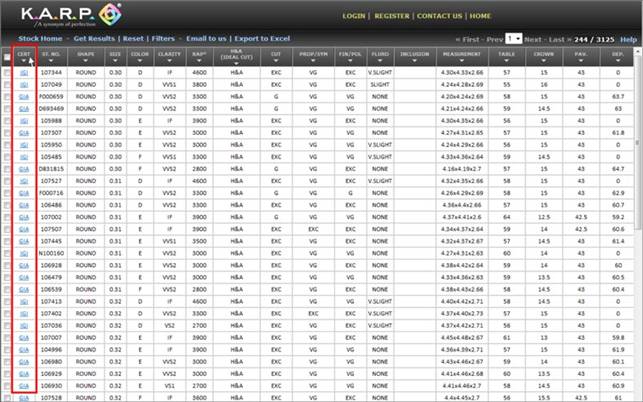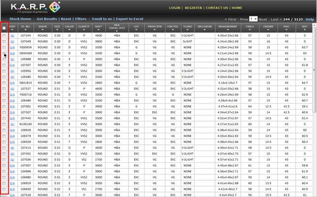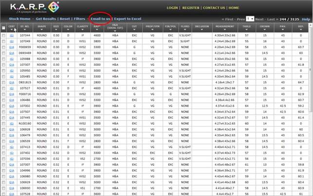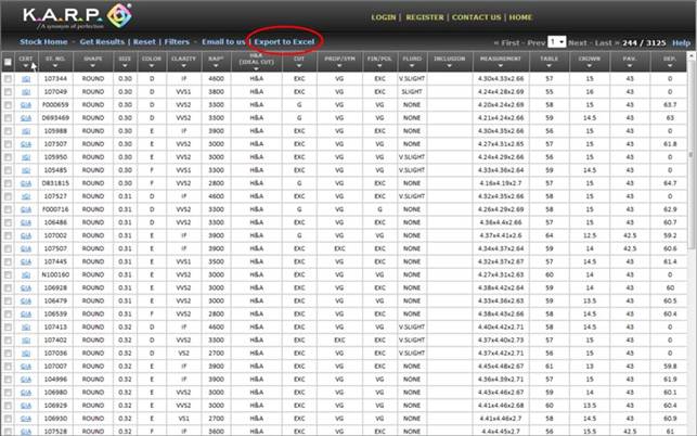 EXPORT THE SELECTED DIAMOND(s) TO EXCEL